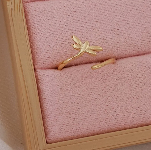 Anel Regulável Detalhe Libélula Folheado (Alta fusão)