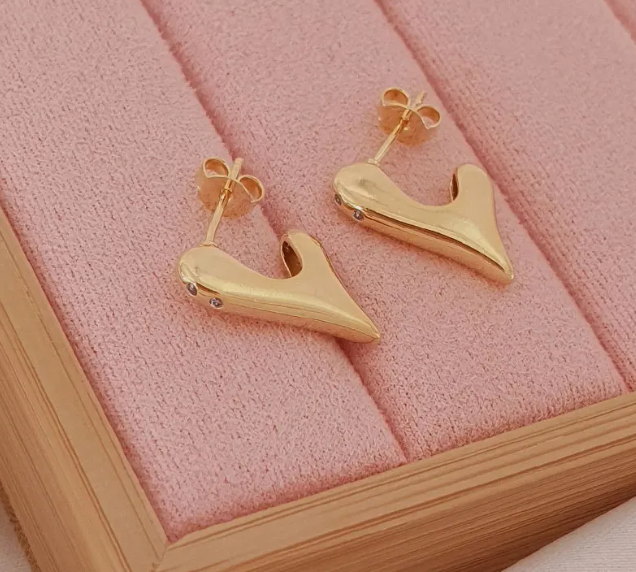 Brinco Coração Micro Zircônia Folheado