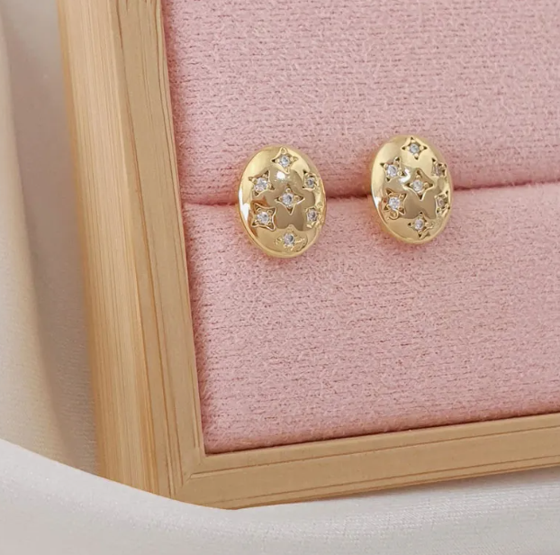 Brinco com Estrelas Micro Zircônia Folheado