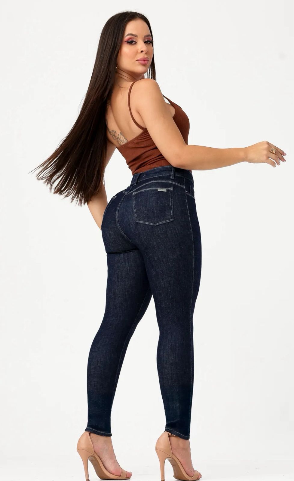 - Calça Jeans Skinny modeladora levanta bumbum de cintura alta.